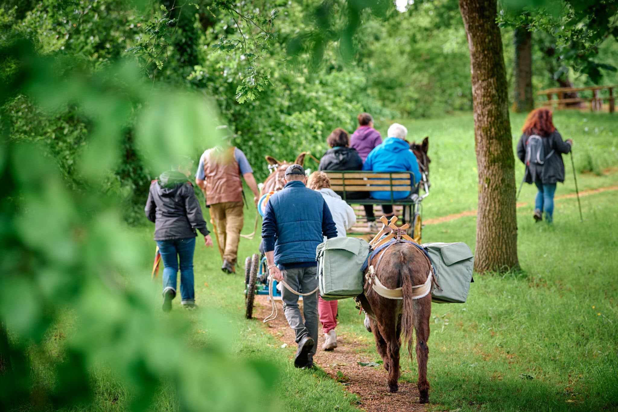 Randonnée pédestre avec âne baté ou attelé avec un cariâne